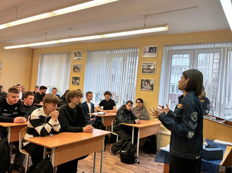 Перед обучающимися группы 175 и 181 11 марта 2026 года выступила первый секретарь Московского РК ОО «БРСМ» г. Бреста Полина Белошицкая.